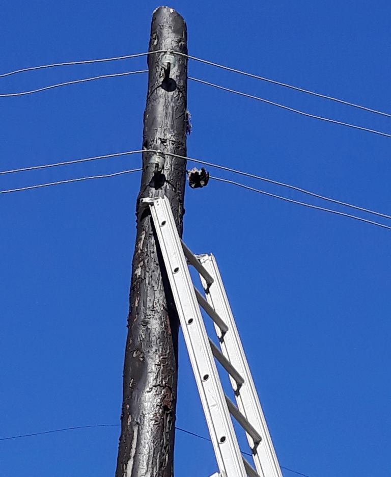 По его словам, на вызов о спасении дятла прибыл дежурный караул Жашковской пожарно-спасательной части. Спасатели по выдвижной лестнице поднялись на столб и с помощью диэлектрического инструмента освободили птицу.