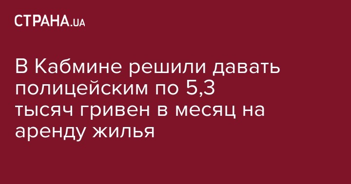 В Кабмине решили давать полицейским по 5,3 тысяч гривен в месяц на аренду жилья