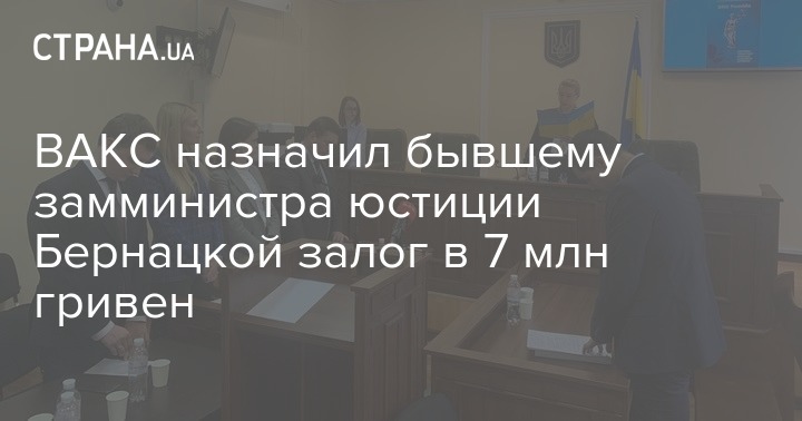 "Высший антикоррупционный суд назначил бывшей заместительнице министра юстиции Бернацкой залог в 7 млн грн", - говорится в сообщении.