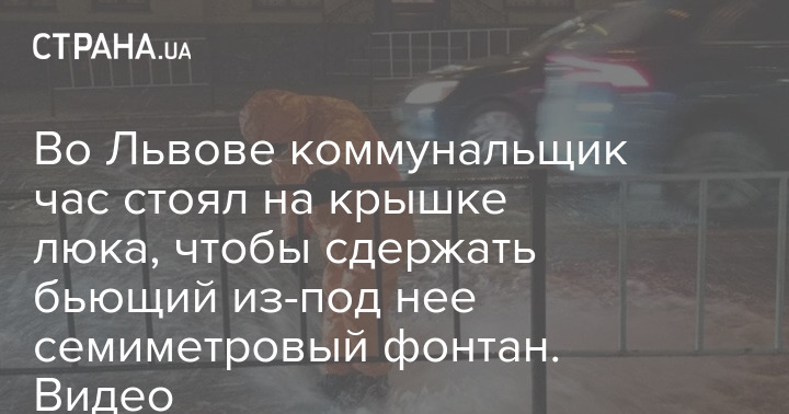 Во Львове коммунальщик час простоял на люке, из-под которого бил фонтан. Фото: Эспрессо