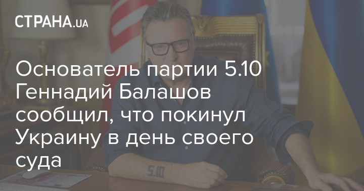 В четверг, 8 сентября, бизнесмен и основатель партии "5:10" Геннадий Балашов сообщил, что покинул Украину. Он опубликовал фото с видом из иллюминатора самолета, подписав его: "Мои соболезнования".