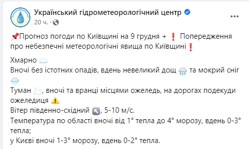 В Украине сегодня, 9 декабря, ожидается туман. На дорогах видимость ограничена до 200-500 м. Синоптики объявили штормовое предупреждение.