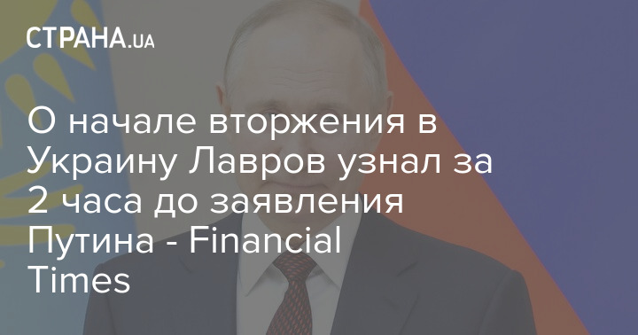 О начале вторжения в Украину Лавров узнал за 2 часа до заявления Путина - Financial Times