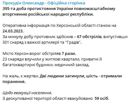 Стреляли из тяжелой артиллерии и "Градов". Херсон обстреляли семь раз, зафиксировано 23 прилета по жилым кварталам, частным и многоквартирным домам и по медицинскому учреждению.