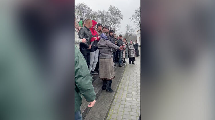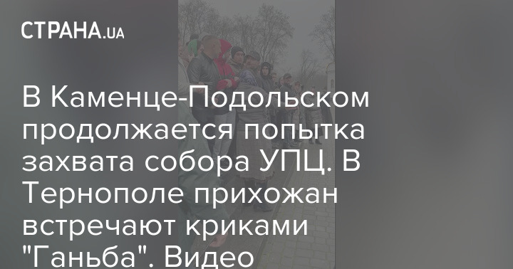 Между тем в Тернополе верующие УПЦ идут в храм под крики "Ганьба". Протестующие держат в руках плакаты "прочь из Украины" и "Чемодан вокзал Россия".