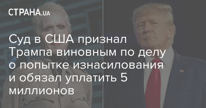 Суд в США признал Трампа виновным по делу о попытке изнасилования и обязал уплатить 5 миллионов