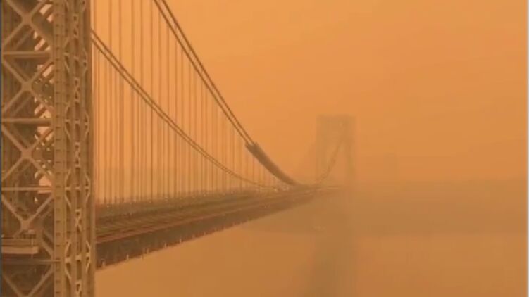 Дым от мощнейших лесных пожаров из Канады достиг США и затянул Нью-Йорк.