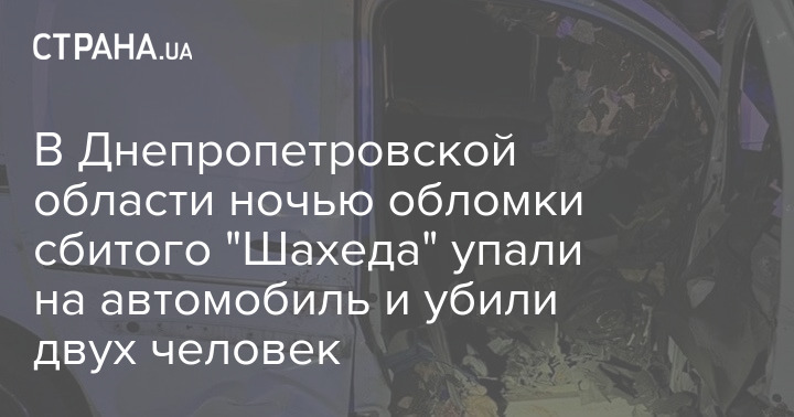 Ночью россияне атаковали Днепропетровскую область "Шахедами". Обломки одного из дронов рухнули на автомобиль, два человека в нем погибли.