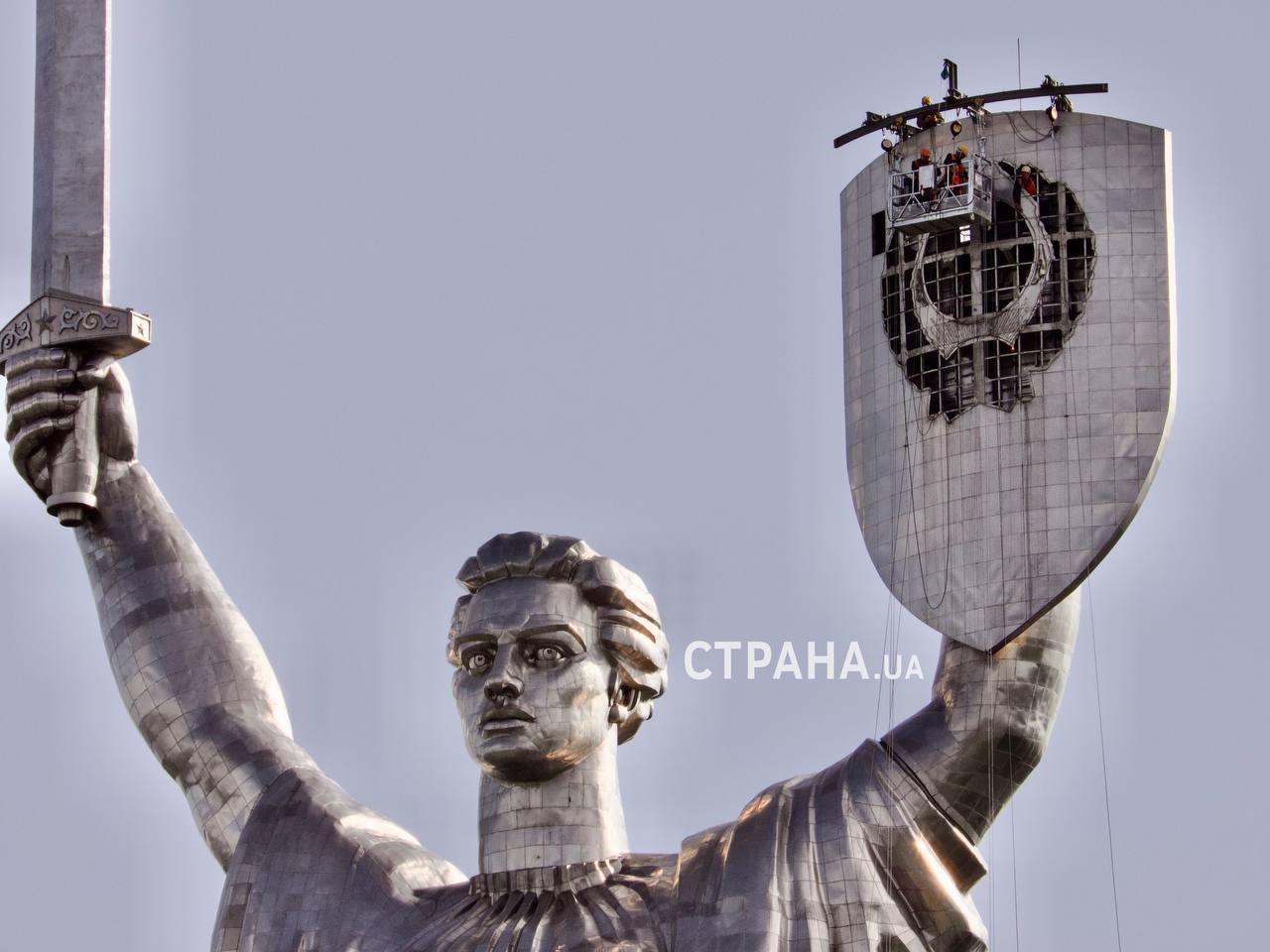 Напомним, демонтаж советского герба на монументе "Родина-мать" начался в воскресенье, 30 июля.