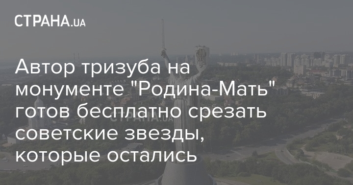 Автор тризуба, который заменил советский герб на монументе "Родина-Мать" в Киеве, скульптор Алексей Пергаменщик в комментарии "Стране" заявил, что готов бесплатно срезать советские звезды, которые остались на гарде меча.