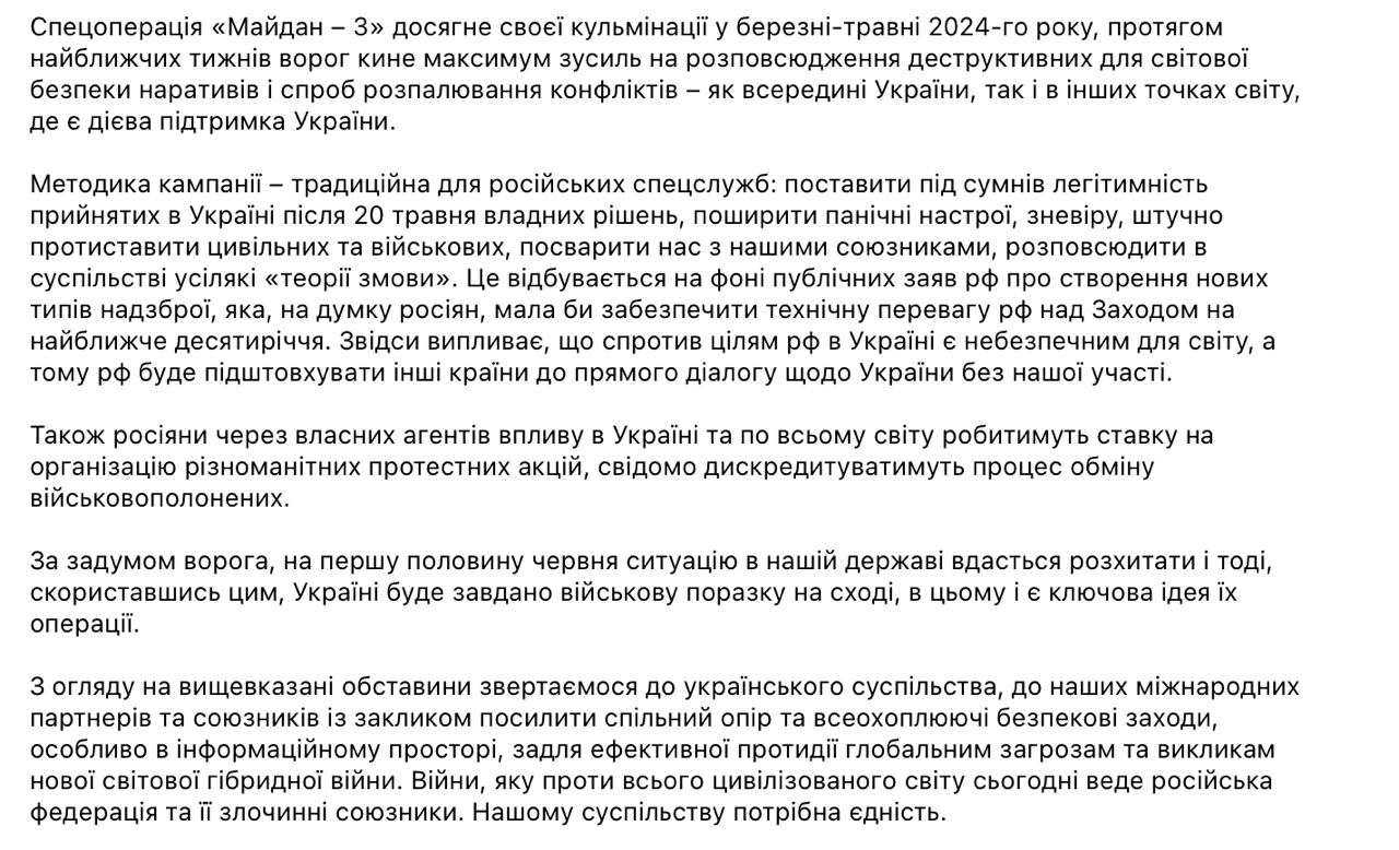 По его данным, кампания "Майдан-3" должна достичь кульминации в марте-мае 2024 года.