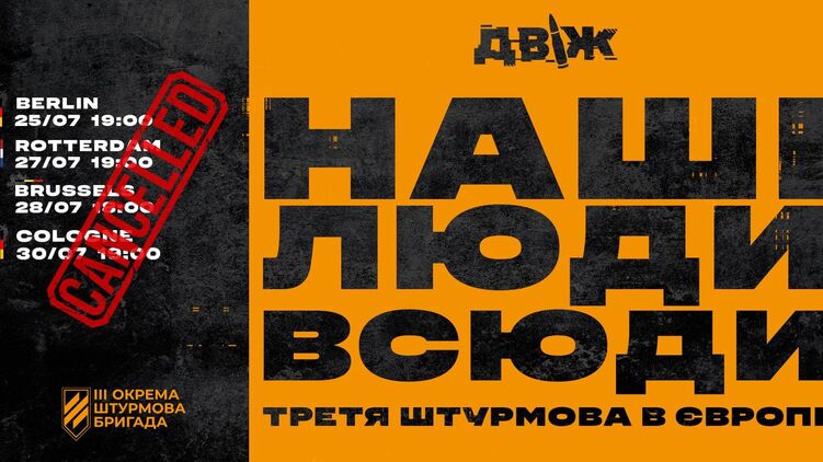 Третья штурмовая бригада отменила поездки своих ветеранов по ФРГ и Нидерландам. Они собирались провести встречи с украинцами - в Берлине, Роттердаме, Брюсселе и Кельне. Поездка отменена из соображений безопасности.