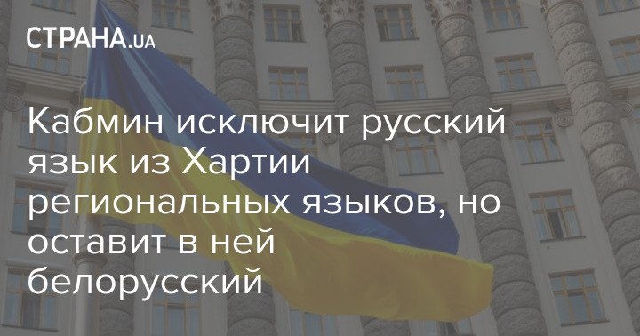 Кабинет министров предлагает исключить русский язык из текста перевода ратифицированной Верховной Радой Украины Европейской хартии региональных и миноритарных языков.