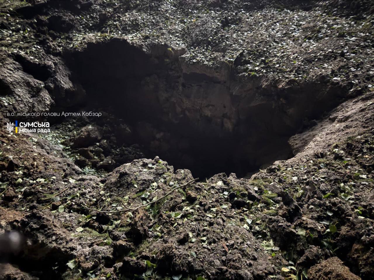 23:31 Воронка после ракетного удара РФ по Сумам.