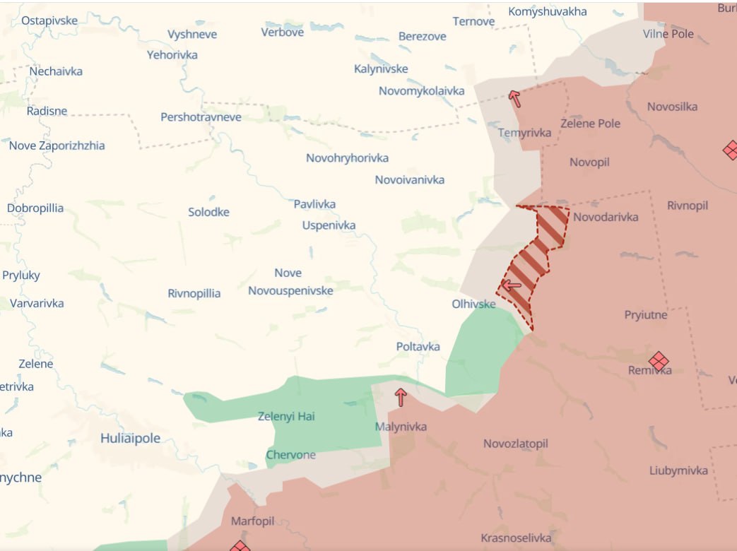23.27 Армия РФ продвинулась возле Темировки и Ольговского Запорожской области, а также в районе Муравки на западе Донецкой области.