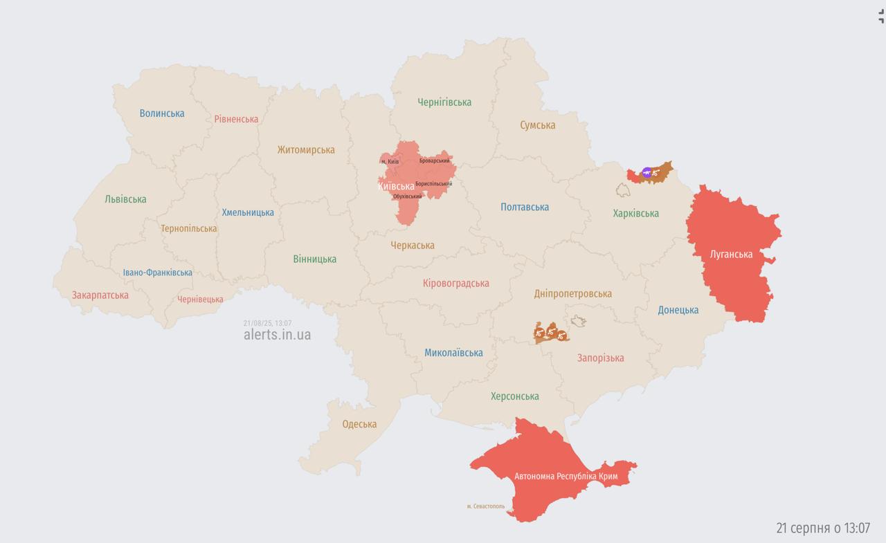 13:05 Воздушная тревога в Киеве из-за угрозы БПЛА.