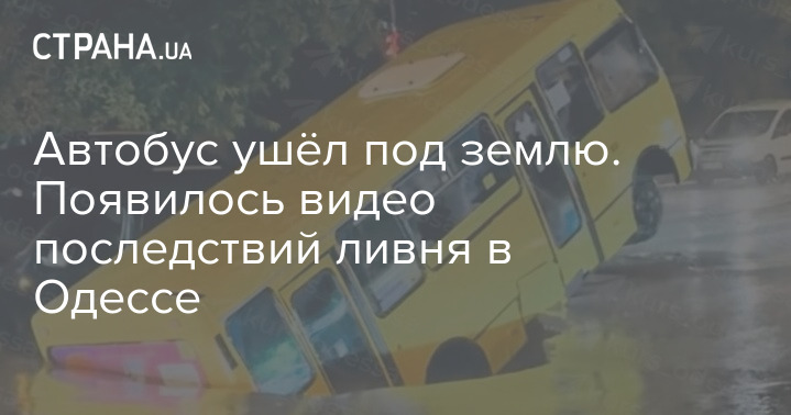 Маршрутный автобус в Одессе ушел под землю из-за прорыва теплотрассы на фоне ливня, бушевавшего над городом в течении всего дня.