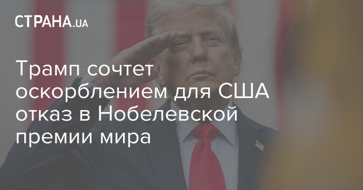 Президент Соединенных Штатов Америки Дональд Трамп заявил, что если ему не вручат Нобелевскую премию мира, это станет "оскорблением для США".