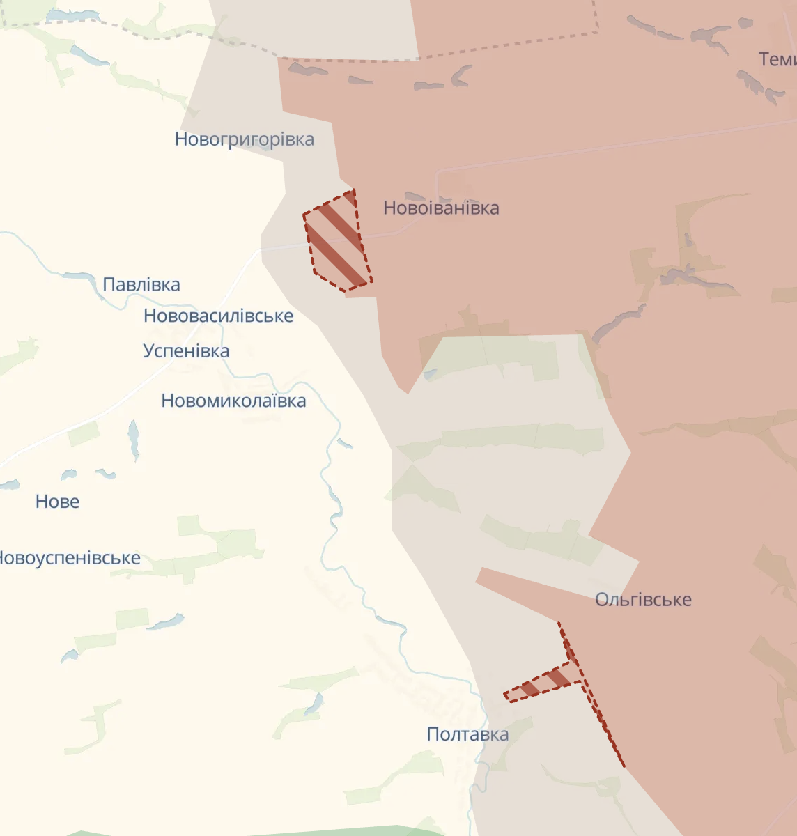 В Днепропетровской области россияне продвинулись к западу от Новоивановки, а в Запорожской - в Полтавке, где "серая зона" уже переходит местами на правый берег Янчула.
