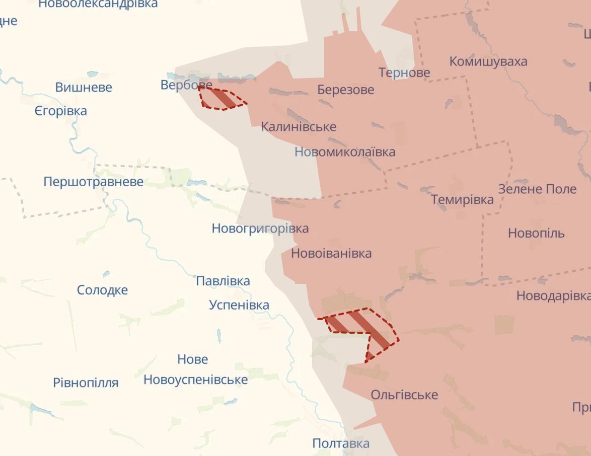 Россияне вторые сутки продвигаются на границе Днепропетровской и Запорожской областей. Они захватили сразу три населенных пункта: Ольговское, Березовое и Калиновское.