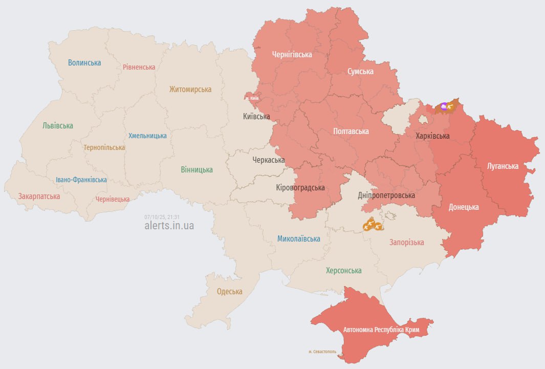 21.32 Тревога в Киеве и ряде областей из-за БПЛА.