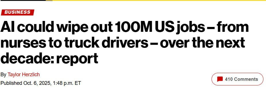 ИИ и автоматизация могут уничтожить до 100 миллионов рабочих мест в США в течение следующего десятилетия.