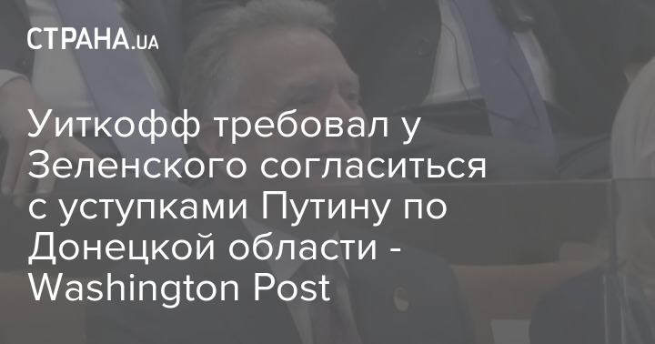 Уиткофф требовал у Зеленского согласиться с уступками Путину по Донецкой области - Washington Post