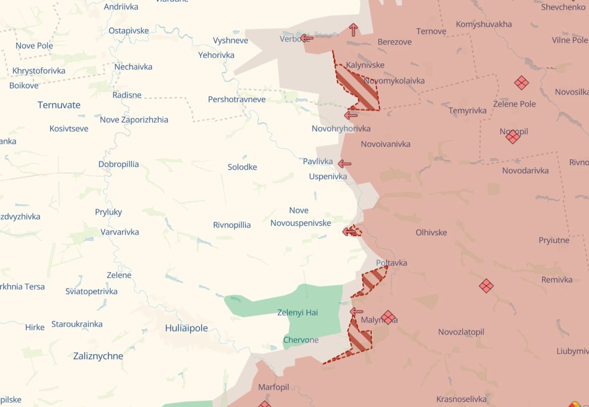 7.30 Армия РФ продвинулась в районах Малиновки и Полтавки на востоке Запорожской области, а также Калиновского на юго-востоке Днепропетровской области, сообщает Deep State.