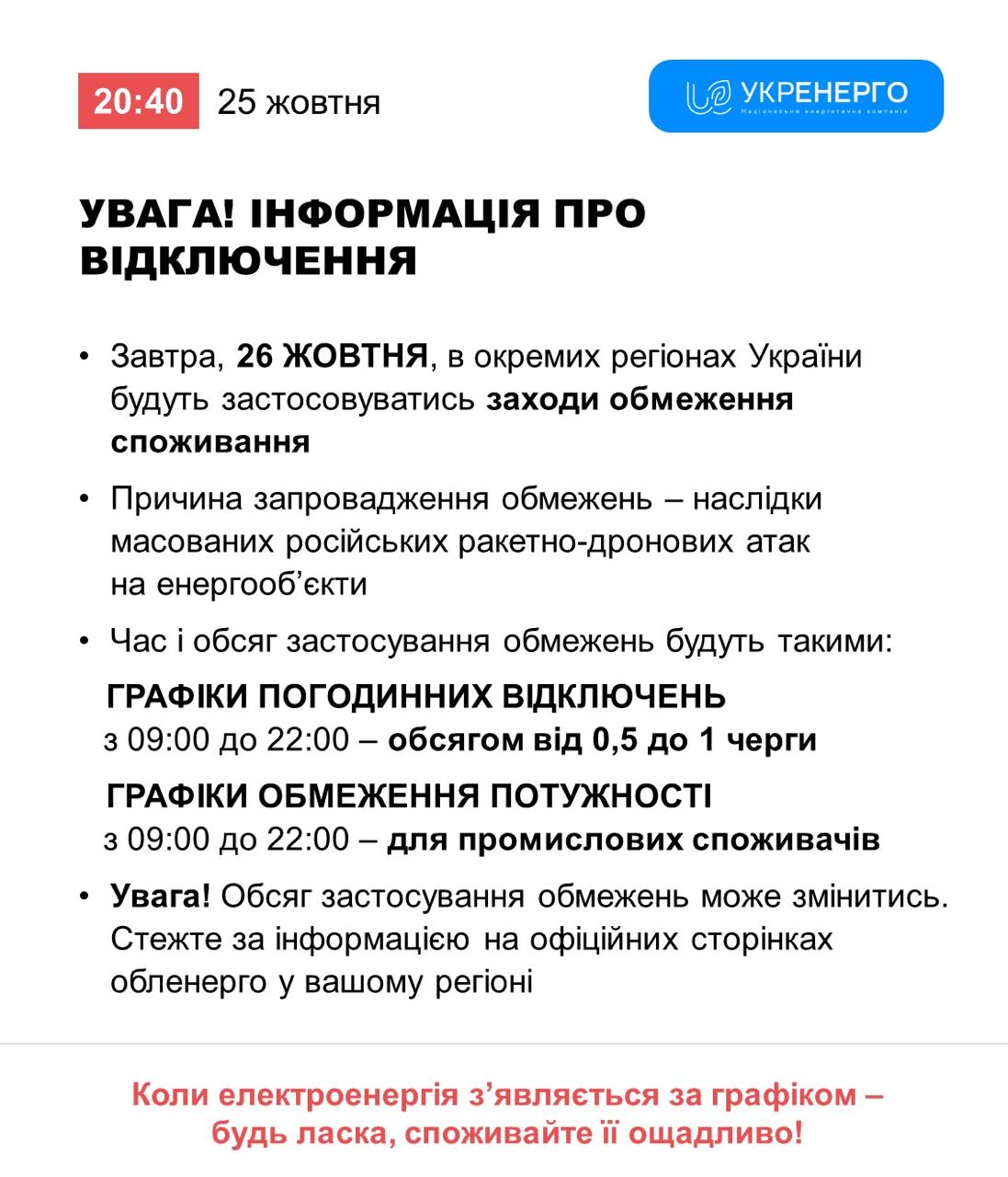 Это коснется "отдельных регионов", сообщает "Укрэнерго".