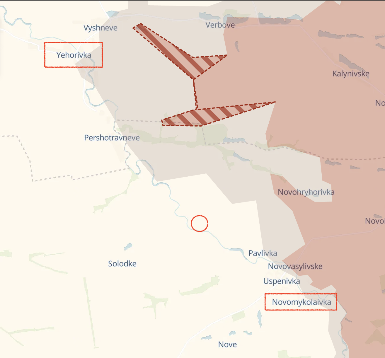 Также от Егоровки остается чуть больше четырех километров до трассы из Покровского на Гуляйполе, которая, похоже, переходит под плотный огневой контроль РФ.