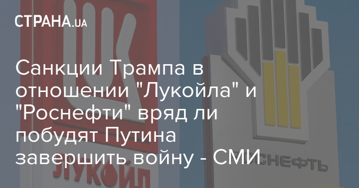 Санкции Трампа в отношении "Лукойла" и "Роснефти" вряд ли побудят Путина завершить войну - СМИ