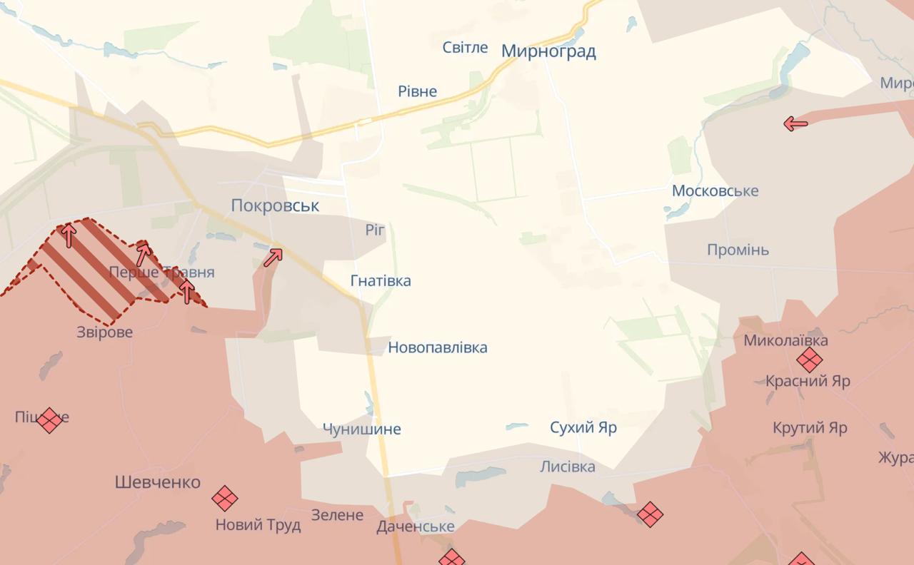 Армия РФ продвинулась южнее Покровска, сообщает военный паблик Deep State.