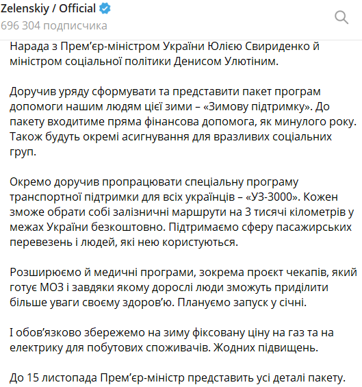 Информация была озвучена президентом после встречи с премьер-министром Юлией Свириденко.