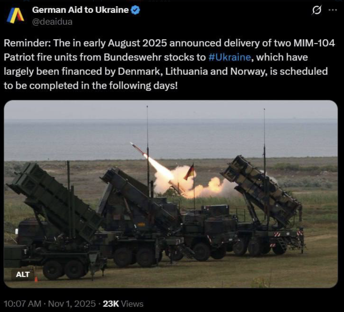Об этом сообщил аккаунт German Aid to Ukraine в X.