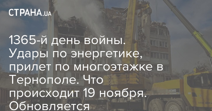 В среду, 19 ноября, в Украине идет 1365-й день войны с Россией.