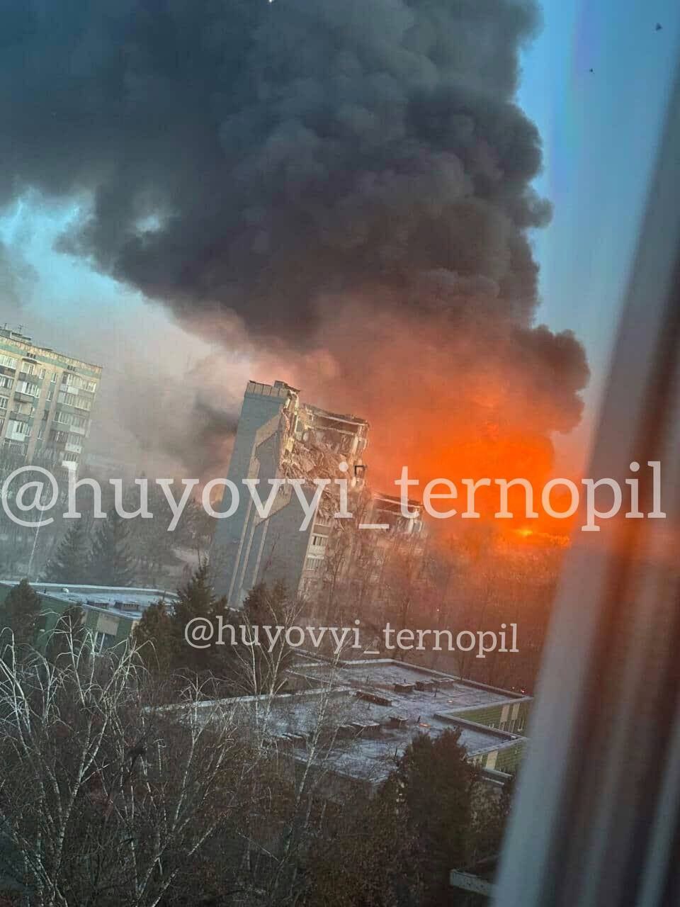 7.50 Масштабный столб дыма в Тернополе после прилёта.