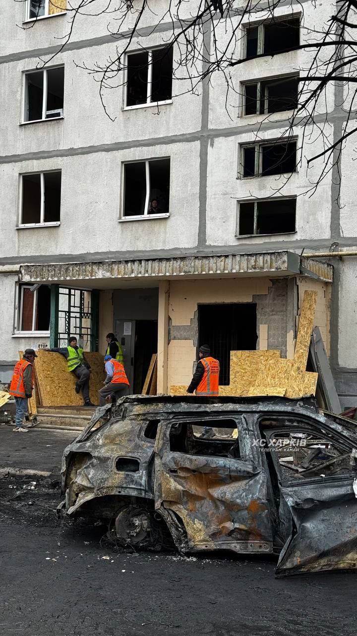 7.58 Кадры многоэтажки, повреждённой в Тернополе после обстрела.