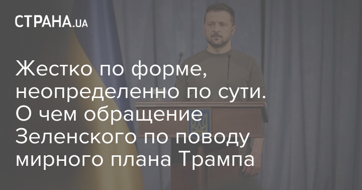 Жестко по форме, неопределенно по сути. О чем обращение Зеленского по поводу мирного плана Трампа