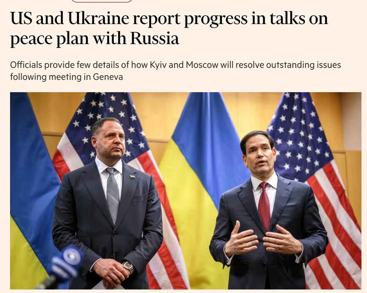 Об этом пишет британская газета Financial Times по итогам переговоров делегаций Украины и США в Женеве со ссылкой на еврочиновников.