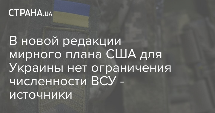 В отредактированном проекте мирного плана США для Украины были убраны слова об "ограничении" численности украинской армии на уровне 600 тысяч – вместо этого там говорится о том, что численность украинской армии "будет оставаться" на определенном уровне.