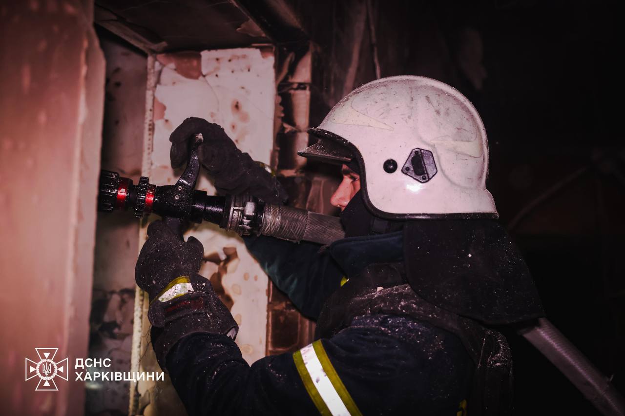 Дроны атаковали территорию одного из объектов в Основянском районе города. Возникло несколько очагов возгорания на общей площади 500 кв. м. Жертв и пострадавших нет.