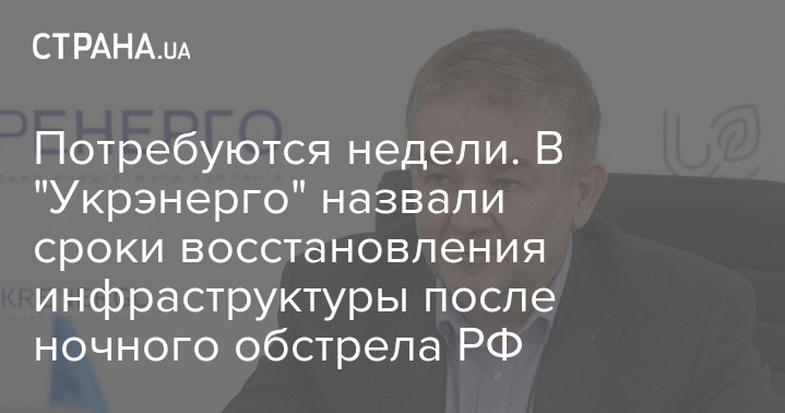 Устранение последствий сегодняшнего удара РФ по энергосистеме Украины займёт недели.