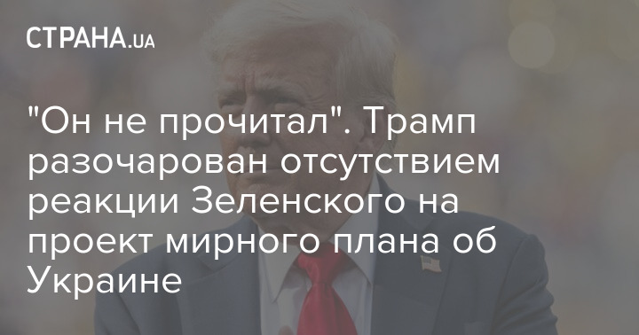 Президент США Дональд Трамп заявил, что разочарован отсутствием реакции украинского президента Владимира Зеленского на проект мирной сделки.