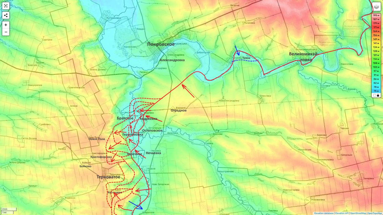 Это село с юга "перетекает" в Терноватое, то есть, по сути, бои начались уже за этот тактически важный населенный пункт. Ранее россияне заявляли, что вошли в Терноватое с севера. Ниже - российская карта.