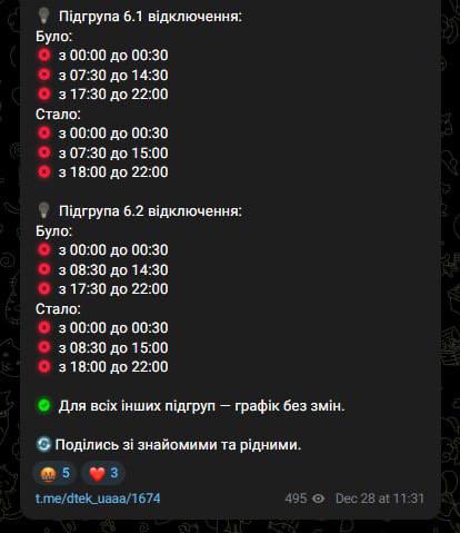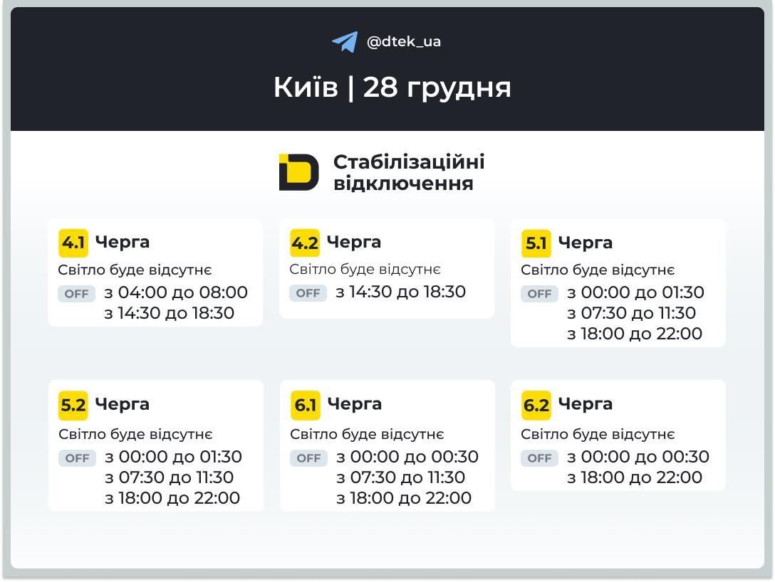 12:40 Новые графики отключения света для правого берега Киева.