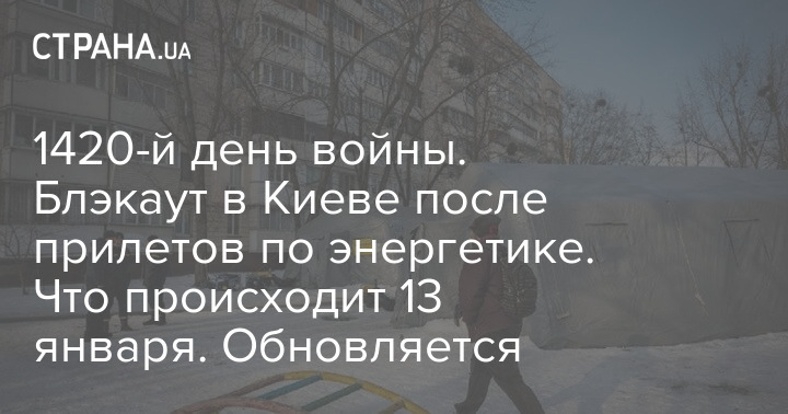 Во вторник, 13 января, в Украине идет 1420-й день войны с Россией. После ночных ударов по объектам энергетики почти весь Киев остался без света.