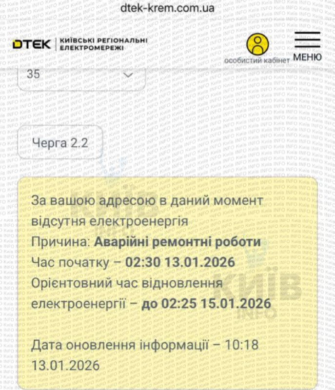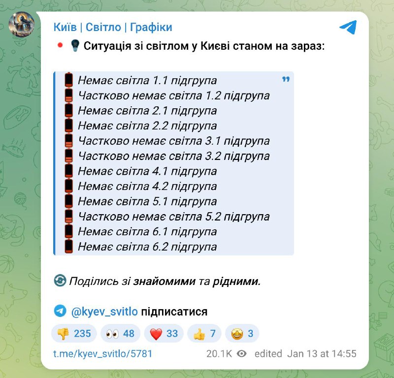 P.S. После публикации этой информации в телеграмм-каналах, ДТЭК прислал новую информацию, что отключения будут до 7 утра 14 января.