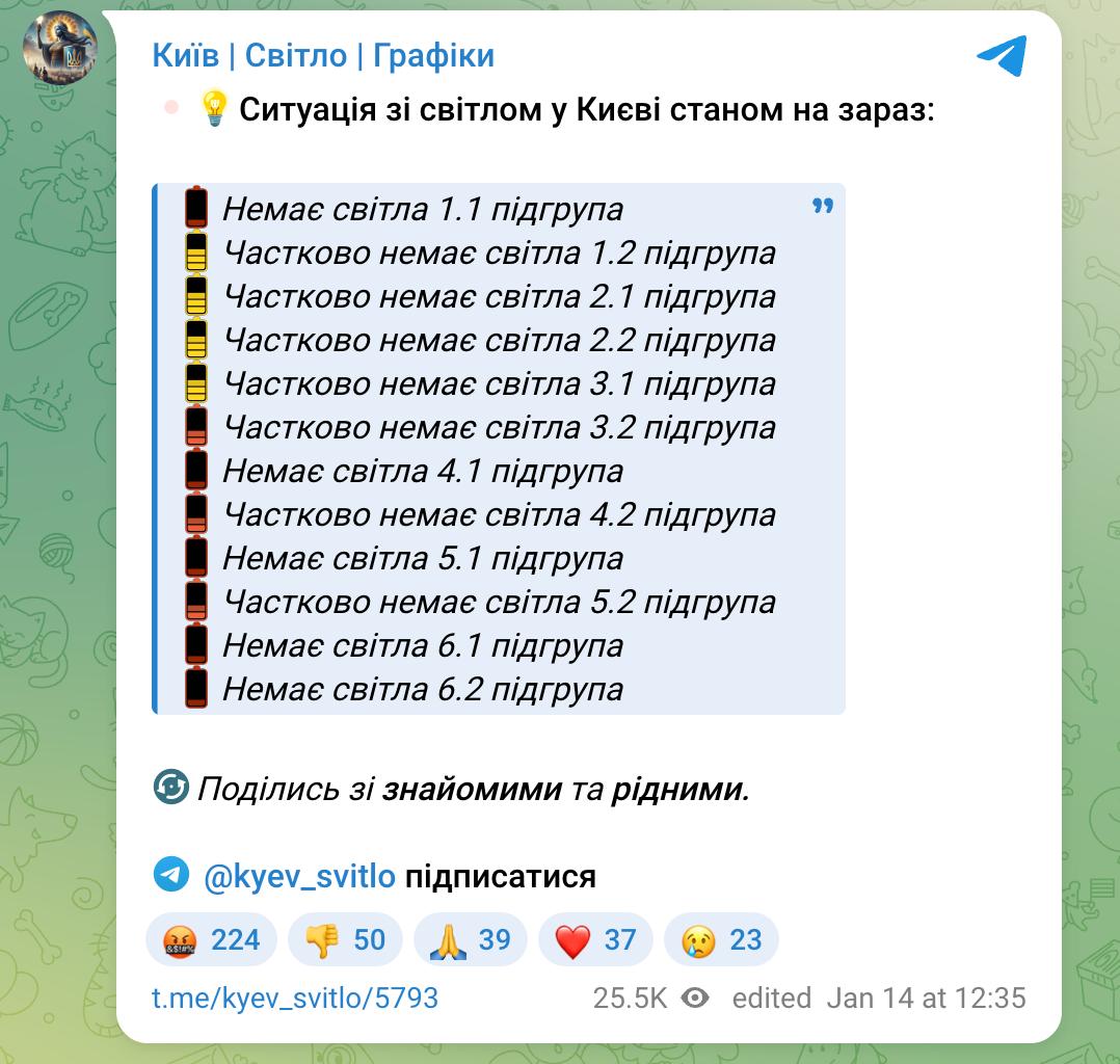 Напомним, в Киеве подобные графики действуют второй день после прилетов по объектам энергетики.