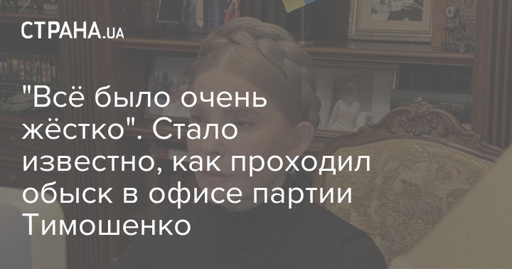 "Всё было очень жестко: применяли силу, не обращая внимания на то, кто перед ними, забрали телефоны у самой Тимошенко и всех, кто был в офисе, собрали компьютеры. При этом у них не было решения суда - вообще какого-либо документа, которым они могли бы объяснить свои действия. Нашли деньги. Юля отвечает, что это часть её задекларированных средств. Но они выкладывают доллары перед ней и фотографируют", - рассказал собеседник.