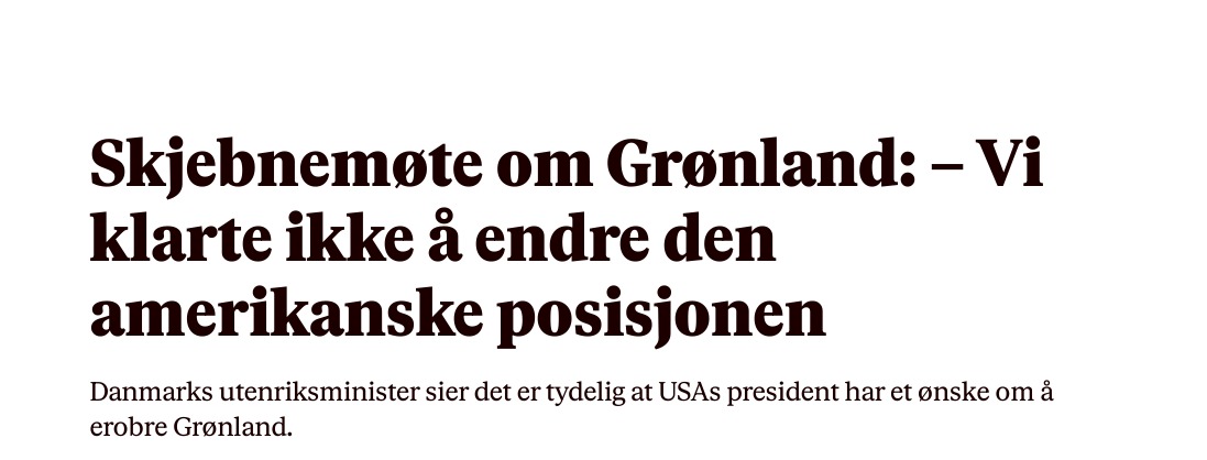 "В настоящее время в НАТО ведется диалог о том, как мы можем укрепить безопасность в Арктике, в том числе в районах Гренландии и вокруг нее. Пока никаких выводов не сделано, но мы проводим оценки в диалоге с союзниками. В этом контексте Норвегия решила направить в Гренландию двух человек из Вооруженных сил с целью налаживания дальнейшего сотрудничества между союзниками", – заявил министр обороны страны Торе Сандвик.